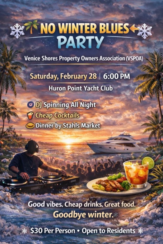 We’re gearing up for our “No Winter Blues” Party on Saturday, February 28th at Huron Pointe Yacht Club on South River Road.